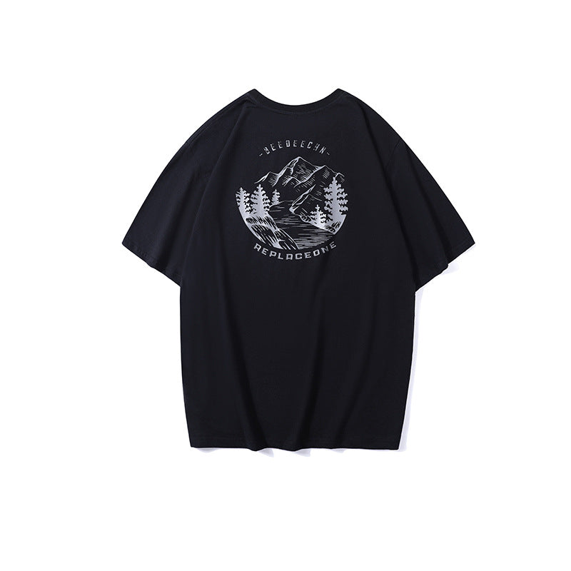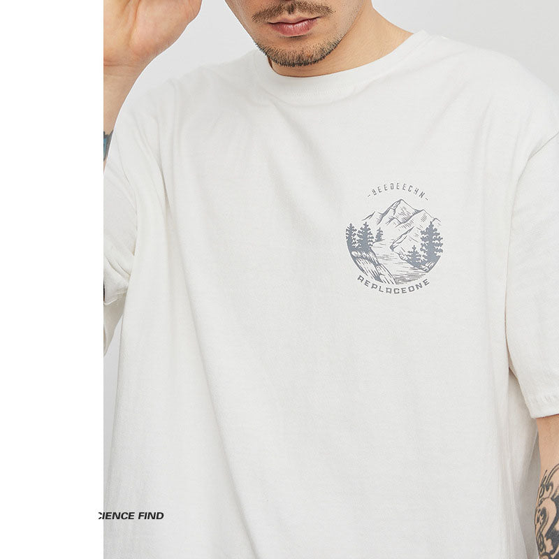 T-Shirt Uomo Stile Outdoor con Stampa Montagna