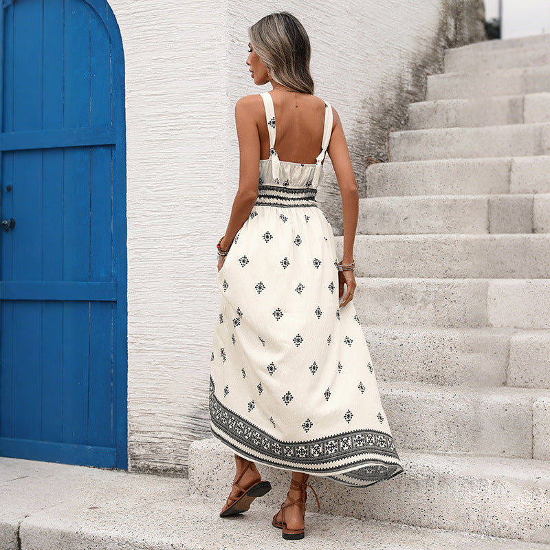 Descrizione prodotto Vestito da donna lungo dallo stile estivo e boho. Il modello presenta spalline sottili e scollo a V... Per saperne di più